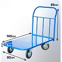 Платформенная тележка с двумя ручками и четырьмя колесами 250 мм предназначена для работы по перевозке грузов на складах, логистических центрах, объектов торговли и прочих мест, где необходимо перевозить товары весом до 550 килограмм. Каркас выполнен из сочетания круглой и профильной трубы. Настил – прочный профильный лист. Удобная ручка позволяет перемещать тележку без риска получения травм. Размер платформы - 1400х800 мм, высота платформы от земли - 30 мм. Тележка покрыта порошково-полимерной краской для защиты от коррозии и механических повреждений. В комплект входит полный набор метизов для сборки изделия.