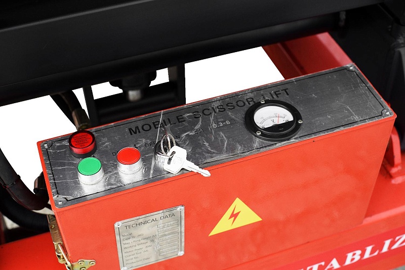Ножничный подъемник SJY0.3-9 отличается высоким уровнем безопасности при работе и превосходной устойчивостью. Снабжен выдвижными аутригерами и сложной системой автоматики. За счет высокого клиренса, больших колес и регулировки аутригеров можно использовать даже на неровных поверхностях. На случай отключения электричества имеется аварийный клапан опускания. Возможна погрузка и выгрузка на все четыре стороны платформы, а также передвижение в разложенном положении.