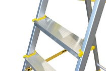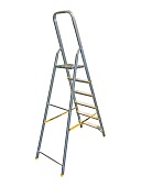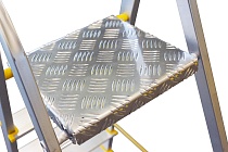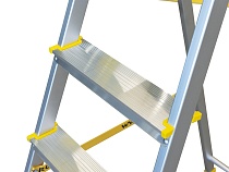 Стремянка алюминиевая профессиональная серии АРА предназначена для проведения различных видов работ на не большой (до 3,8 м) высоте, как в быту, так и на производстве. Стремянка представляет собой свободностоящую переносную лестницу, сужающуюся к верху, имеющую сторону подъема (переднюю ногу), опорную сторону (заднюю ногу), рабочую площадку и раскладывающуюся для подъема на высоту. Дуга безопасности конструктивно выполнена совместно со стороной подъема. Тетива, площадка и ступени стремянки изготовлены из высокопрочного алюминиевого анодированного профиля. Задняя и передняя нога соединены между собой. Ступени и рабочая площадка имеют рифленую поверхность. Башмаки изготовлены из высокопрочного пластика. Стремянка в рабочем положении надежно фиксируется рабочей площадкой (опорная трубка, на которую ложиться площадка, должна полностью войти в пазы площадки), а с определенного размера дополнительно страховочными ремнями.