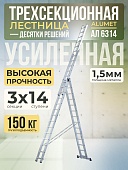 По внешнему виду, стандартная трехсекционная лестница напоминает три обычных лестницы, скрепленные между собой при помощи особых подвижных соединений. Это дает возможность составлять из трех частей разные конструкции, в соответствии с поставленными задачами.
