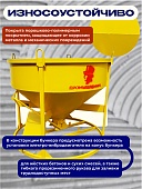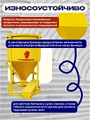 В стандартной комплектации имеется замковое соединение в нижней части емкости, а для удобства выгрузки строительной смеси применяются различные вспомогательные элементы: крепежи для установки шланга бетононасоса, подвесные лотки т.д.