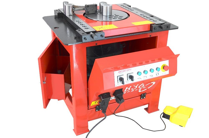 Электрический станок для гибки арматуры Afacan В36 предназначен для гибки холодной арматурной стали. Работает от сети 380 В. Гнет рифленую и гладкую арматуру (катанку) диаметром до 36 мм, в том числе и по несколько прутков одновременно, но в сумме не более 36 мм толщиной. Позволяет быстро создать закладные, крюки, хомуты, изгибы, иные элементы кованных изделий.