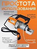 В отличии от ручных станков для резки арматуры, мобильные электрические резчики не требуют от рабочего никаких усилий. Резка осуществляется не путем давления на рычаг всей массой своего тела, а нажатием на кнопку одним пальцем. При этом они в несколько раз меньше и легче профессиональных электрических резчиков, что позволяет использовать их где угодно при наличии сети 220 В.