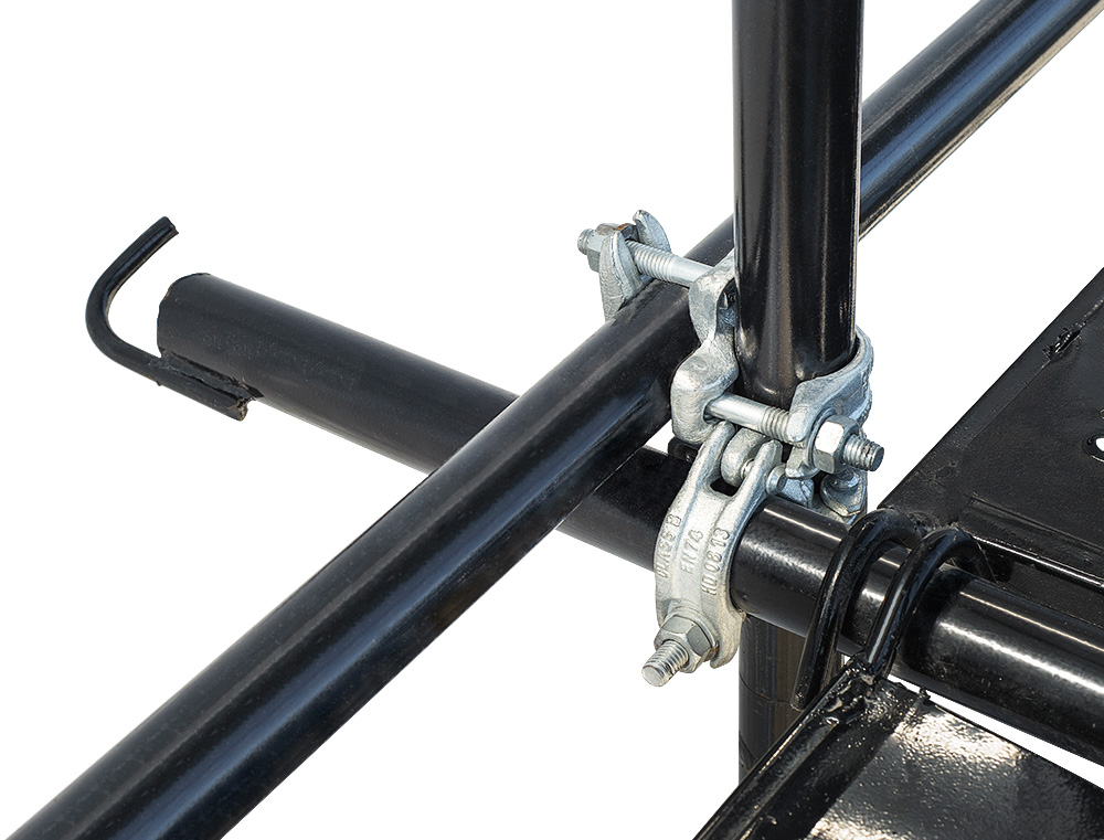 Поперечина для крепления к стене – неотъемлемый горизонтальный элемент при сборке хомутов лесов. Используется для фиксации вертикальных стоек ЛСХ непосредственно к стене с помощью анкеров для придания жесткости каркасу лесов и предотвращения его опрокидывания или завала. Поверх поперечины также устанавливаются настилы. Изготавливаются из трубы 48 мм.