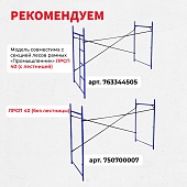 Проходная рама ЛРСП представляет собой несущий элемент каркаса, состоящий из опорных стоек и лестницы для подъема на следующий ярус строительных лесов. Она изготовлена из прочной стали с антикоррозийным защитным покрытием, рассчитана на длительную эксплуатацию с высокими нагрузками. Модель обладает следующими характеристиками;
