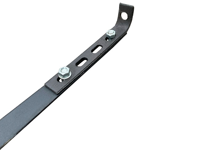 Анкерное крепление предназначено для крепления рам строительных лесов к стене в соответствии со строительными нормами. Конструкция представляет собой две металлические пластины с крюком и болтом для крепления к рамам на одной пластине и с загибом с отверстием под анкеровку на другой. Пластины соединяются между собой при помощи болтов и имеют ряд отверстий для точной регулировки отступа лесов от стены или фасада здания. Анкерное крепление совместимо с рамными и хомутовыми лесами с диаметром труб 42 и 48 мм.