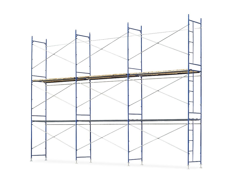 Основная деталь рамных строительных лесов – вертикальная рама с флажковыми замками, размером 2 х 1 метр, существует 2 варианта: проходная рама и рама с лестницей. Диаметр трубы 48 или 42мм.
