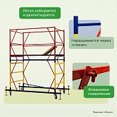 - легкость монтажа вышки туры без применения специальных инструментов и оборудования;