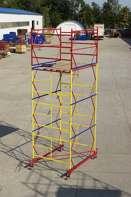 Вышка оборудована колесами и легко перемещается даже одним человеком