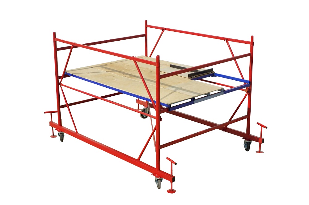 Узел крепления колес усовершенствован и выдерживает большие нагрузки. Стабилизаторы колес позволяют выровнять высоту и обеспечить устойчивость вышки