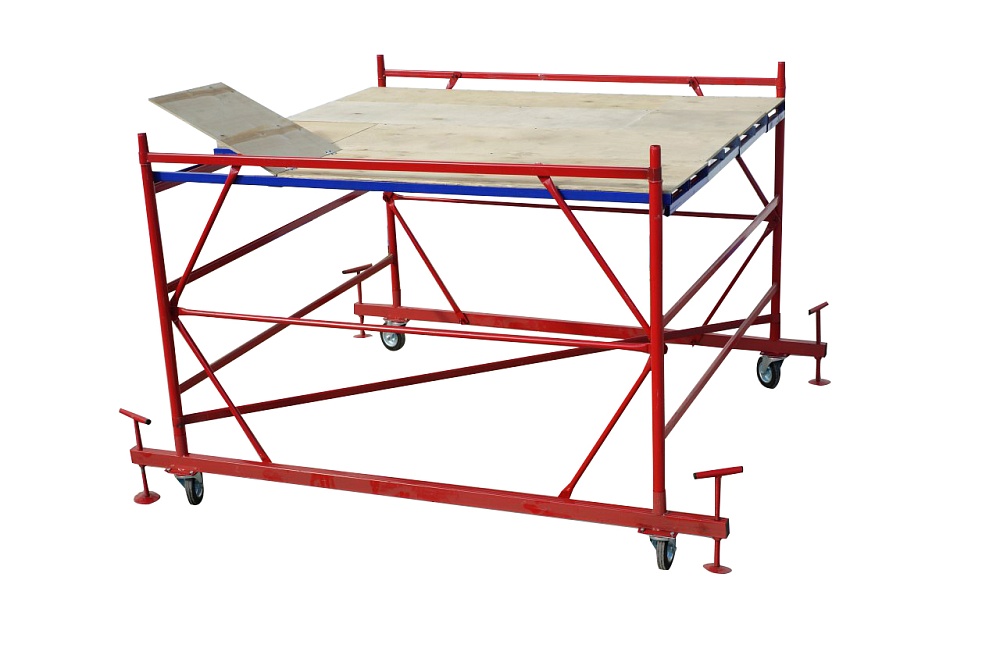 Вышка оборудована колесами и легко перемещается даже одним человеком