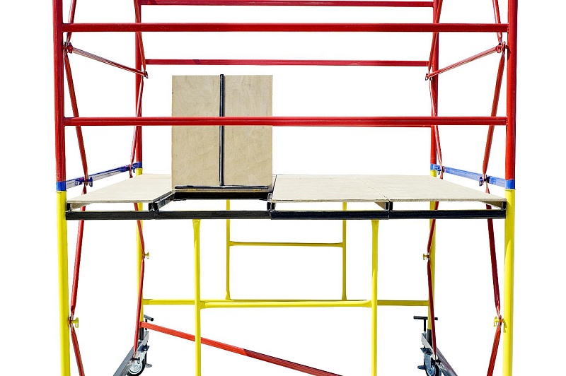 Узел крепления колес усовершенствован и выдерживает большие нагрузки. Стабилизаторы колес позволяют выровнять высоту и обеспечить устойчивость вышки