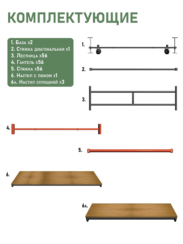Крепятся по центру вышки крест накрест, обеспечивают дополнительную прочность и безопасность