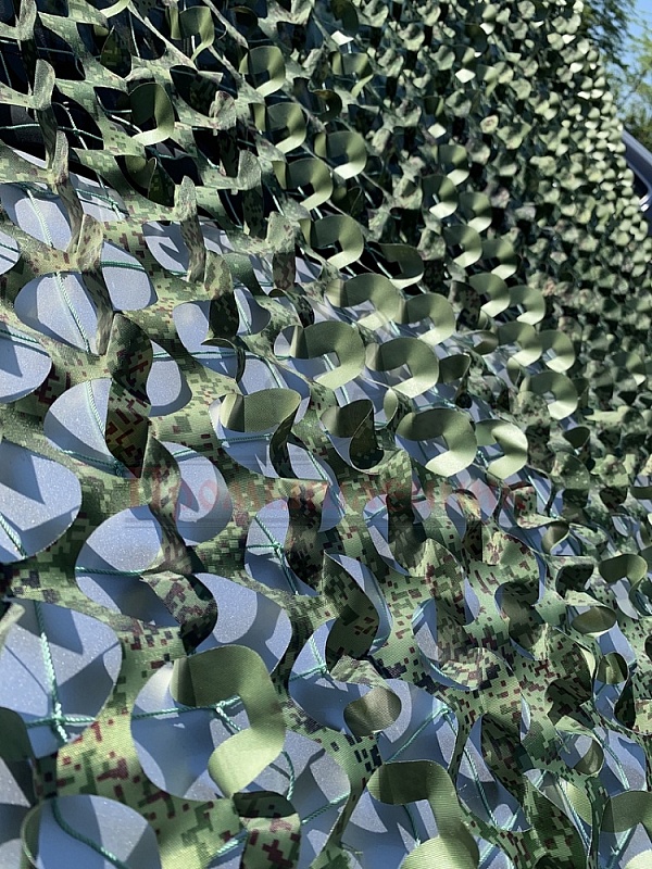 Обработка специальным составом для уменьшения блеска и бликов. Материал комбинированных цветов сливается с окружающей средой и делает маскируемый объект малозаметным